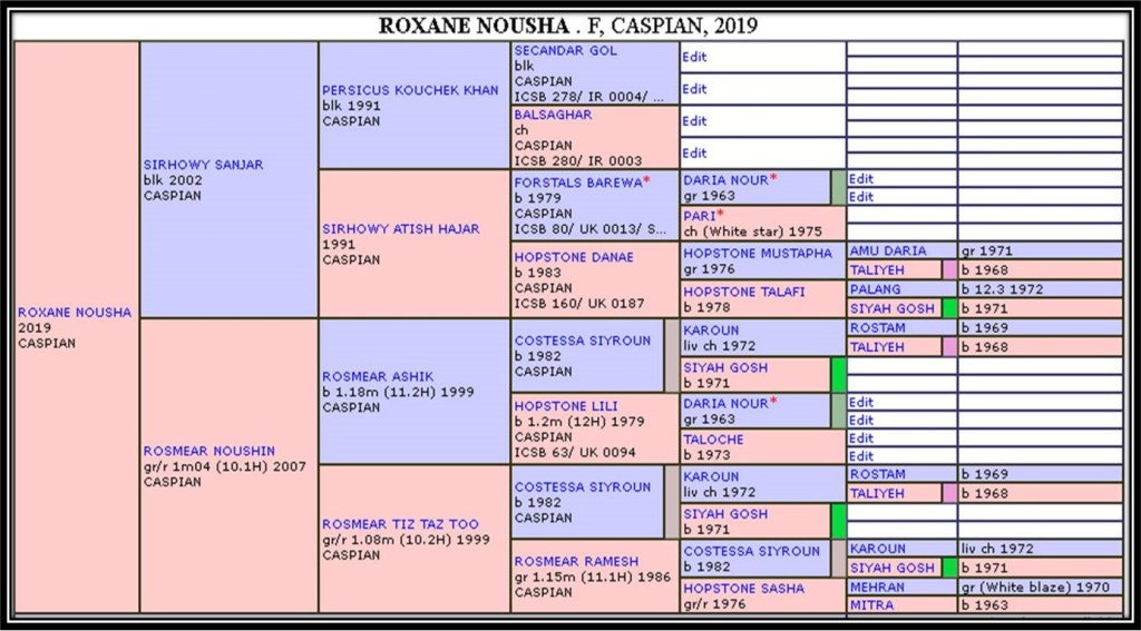 Nousha est la 2ème fille de Noushin, et la propre sœur de Siranoush. Elles appartiennent à la lignée femelle de Mitra* et Hopstone Sasha. Nousha est bien dessinée, petite et compacte.